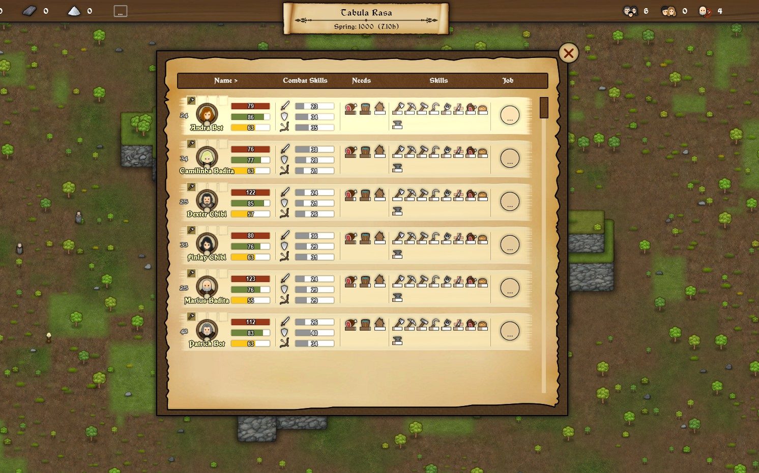 With the A 0.700 version, beside introducing new menus, options, sound, music and ambient sfx, now there is a villager list where you can see an overview of your villagers, their stats and needs, and even sort them by each stats.